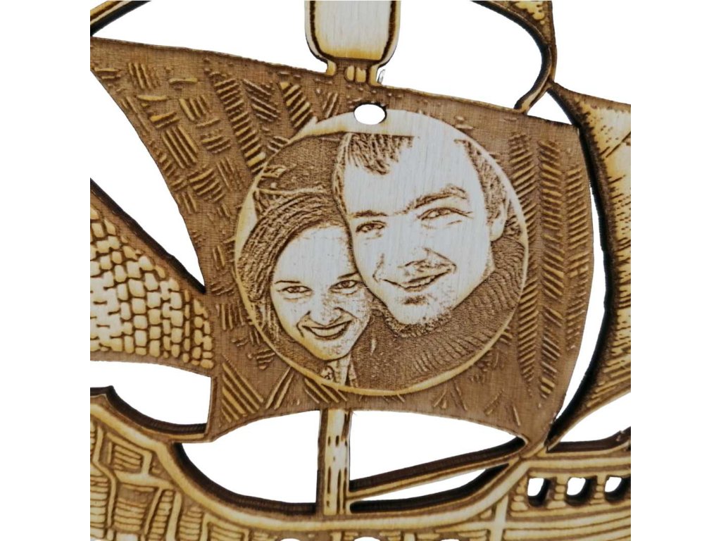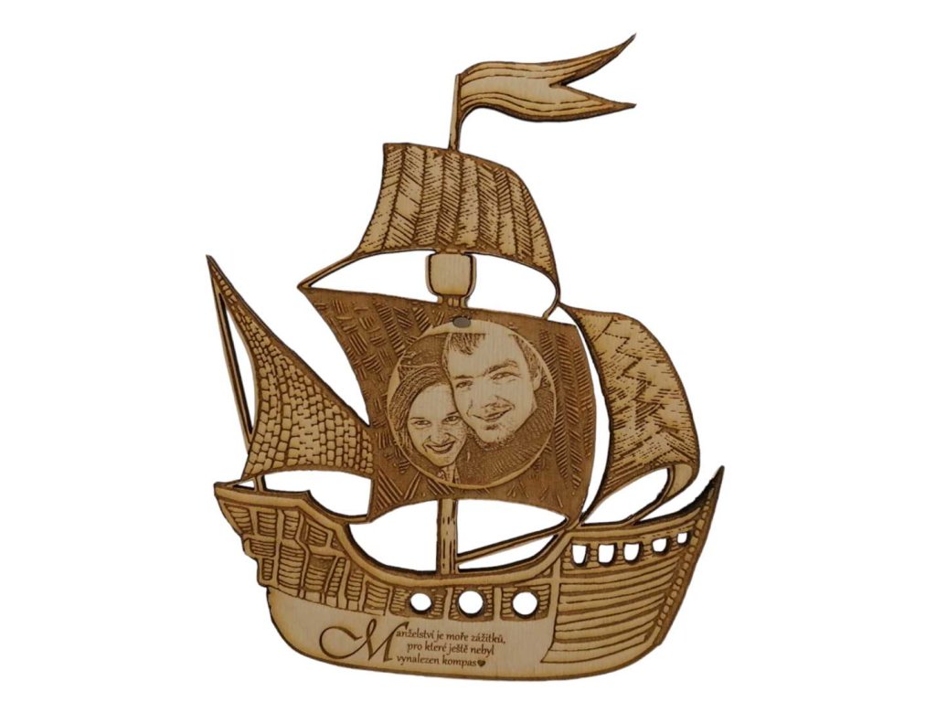 Dřevěné blahopřání stylizované do romantické plachetnice z dílny Vali-Wood je vyrobené technikou laserového řezání a gravírování.
