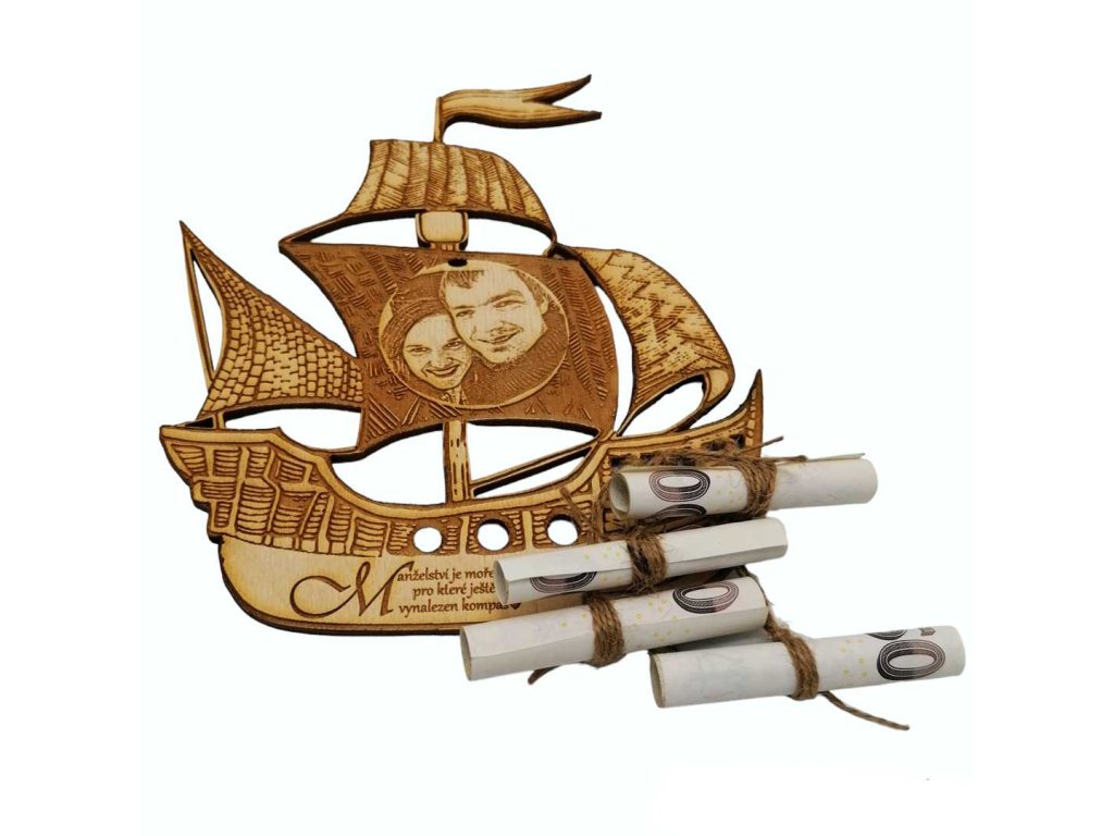 Navíc lze lodičku zavěsit na zeď a díky gravírované fotografii se Vaše blahopřání změní na krásný dárek a připomínku krásného dne novomanželů.