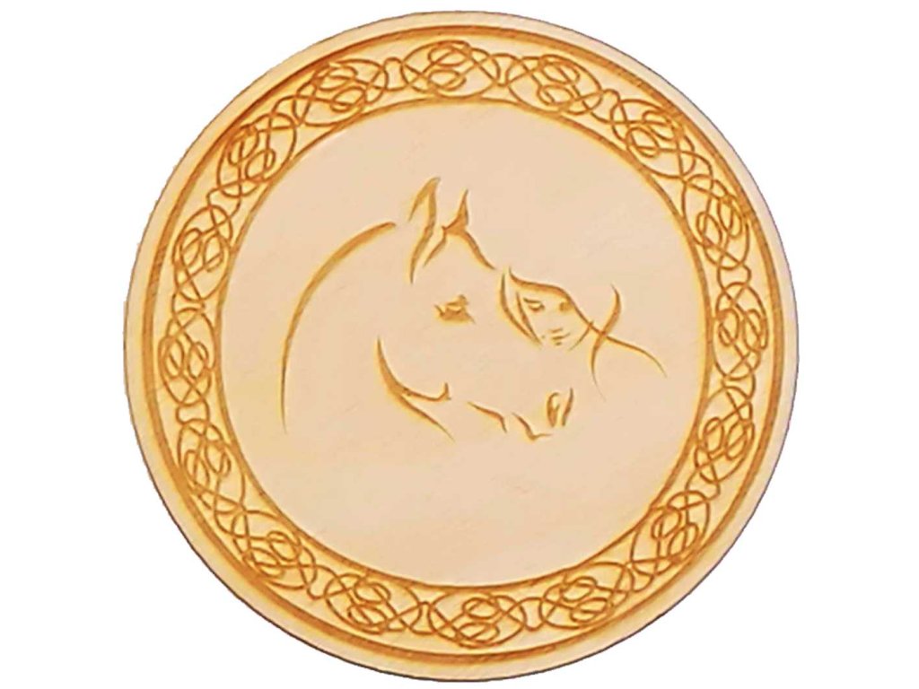 Dřevěný podtácek z dílny Vali-Wood s motivem dívky s koněm.