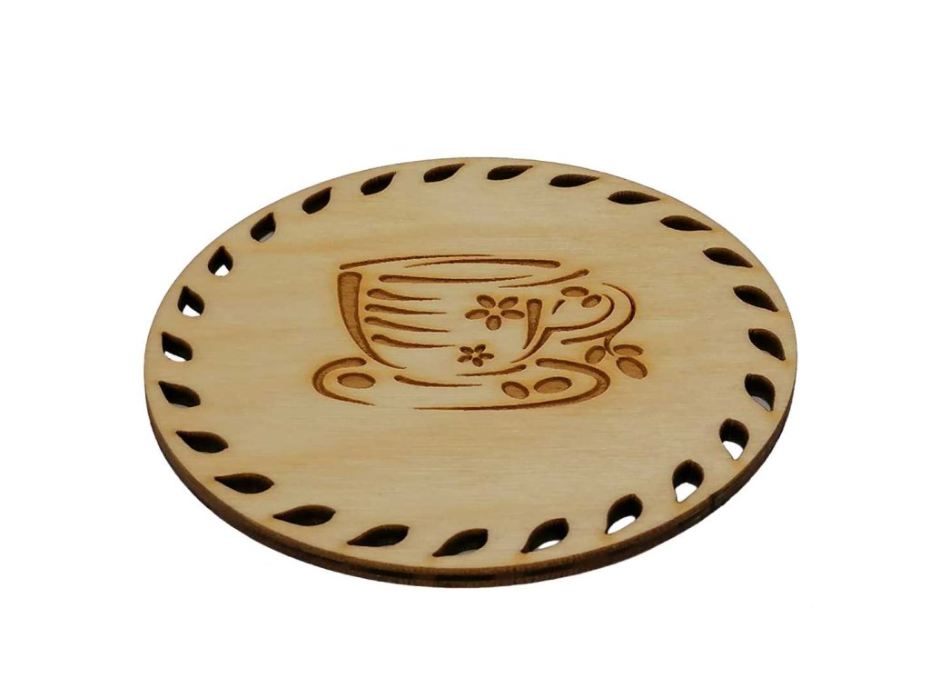 Dřevěný podtácek z dílny Vali-Wood s motivem kávy.
