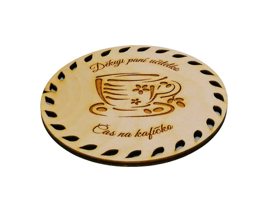 Podtácek s textem: "Děkuji paní učitelko - čas na kafíčko"